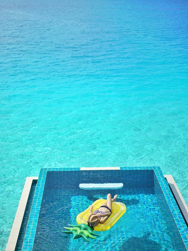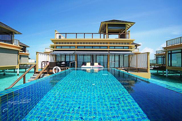 结束浮潜,直接把我们送到水屋,海龟岛的水屋又叫海中阁是修建在海中央,完全独立于主岛。