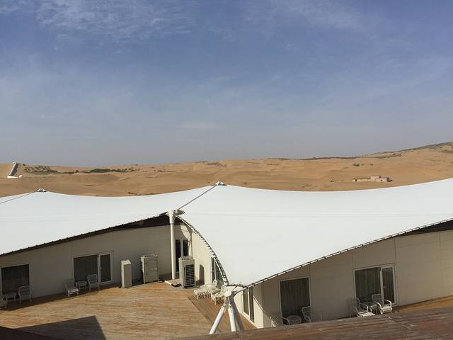 这是进入酒店🏨的第一道关口,要在这里办入住手续,还有需要托运的行李,所有的客人入住酒店时,需乘坐缆车🚠穿越沙漠才能到达,所以除了随身的包都需要托运!