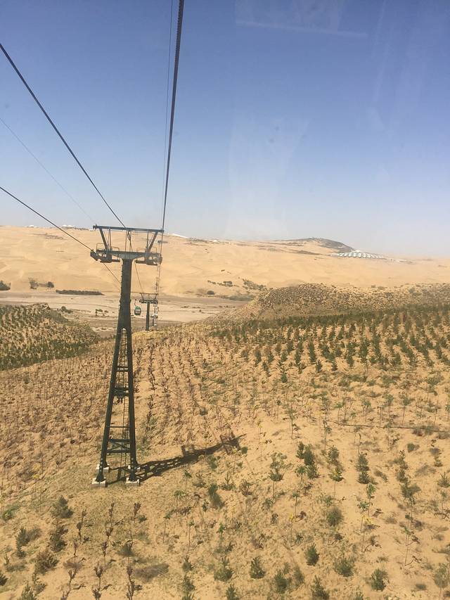 坐在缆车🚠上拍到的莲花酒店🏨的全景,因为手机拍的,距离很远,清晰度有限!但是真的像是金色沙漠里一朵盛开的的白莲花!美🌸