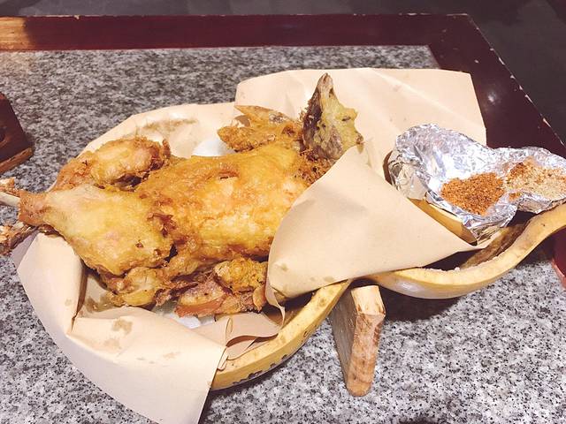 午饭去小寨赛格吃的,看了亚洲第一长梯。然后到六楼吃很有名的“长安大排档”。点了葫芦鸡(超级赞),醪糟冰淇淋,迷你小镜糕,两个人用了代金券90搞定。环境很有特色,服务员也是一色的特色服装,值得一去。