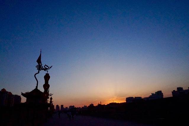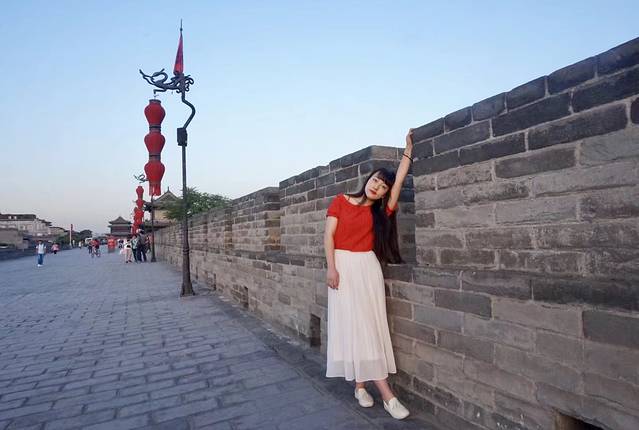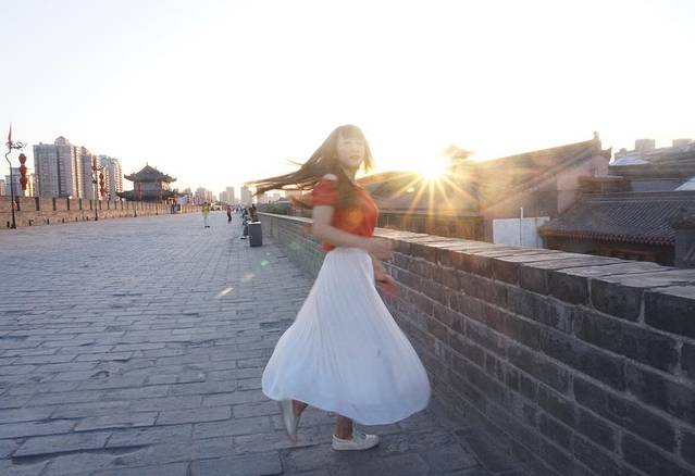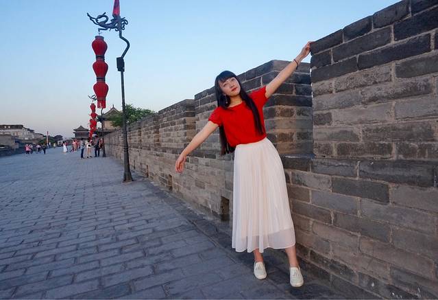 七点多光线好了于是我们赶紧的拍照拍照,城墙和红衣服很配哟~再次感谢小伙伴的照相技术。然后我们悠闲的看看日落,看看夜景。