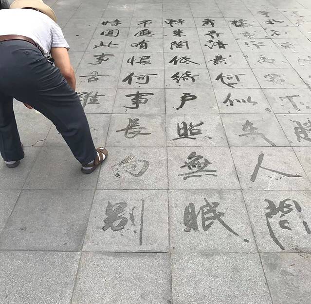 走出朱雀门,看到清晨西安,老奶奶老爷爷在晨练,也有两三人在地上练毛笔字,少了一些旅游味,多了一丝生活气息。