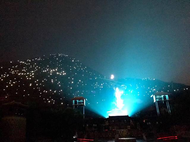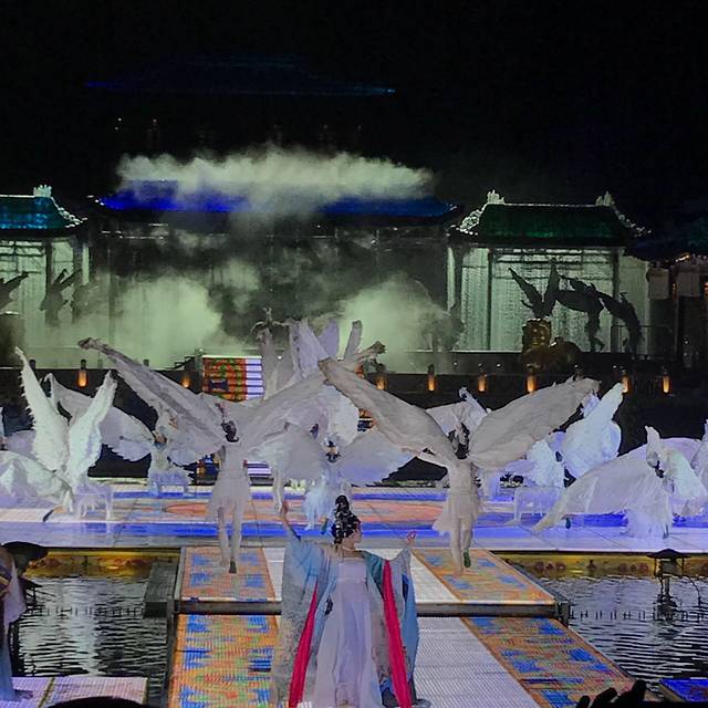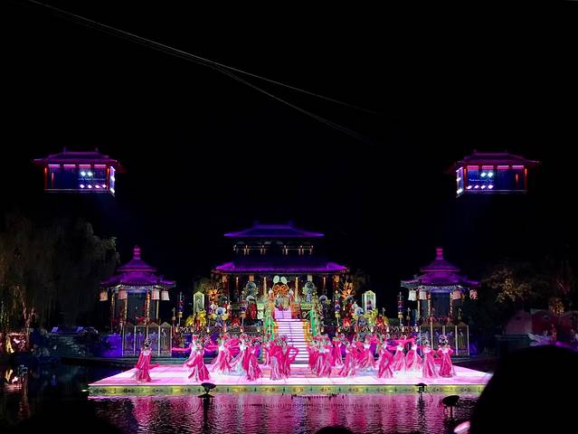 大概四点半车子送我们到华清池,我们找了家川面馆蹭wifi空调和充电,一直到七点去华清池停车场拿我们淘宝上买的票,表演完全值回270票价,位置相当好,舞台灯光舞蹈音乐都很美,印象最深的是整个骊山都亮起星空背景。