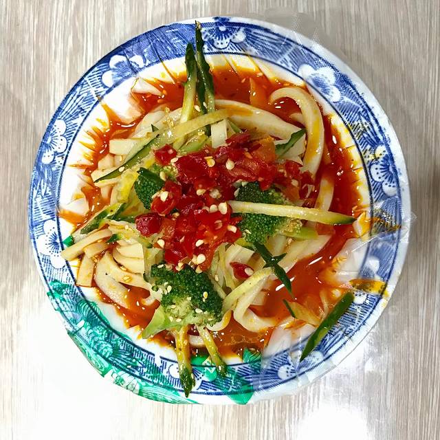 麻酱酿皮,个人觉得没有凉皮好吃,麻酱太浓稠,还是喜欢酸辣的。