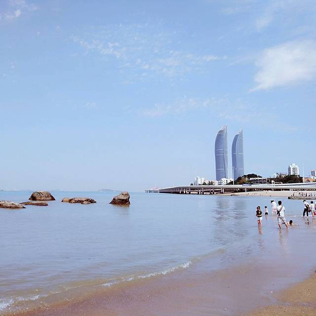 鼓浪屿沙滩比不上厦门的白城沙滩,到对于木有见过海的内陆妹子来说已是不错😝就在菽庄花园旁边,面对日光岩,非常顺路,亲们可以带双拖鞋去沙滩浪一下也是极好的😍😘