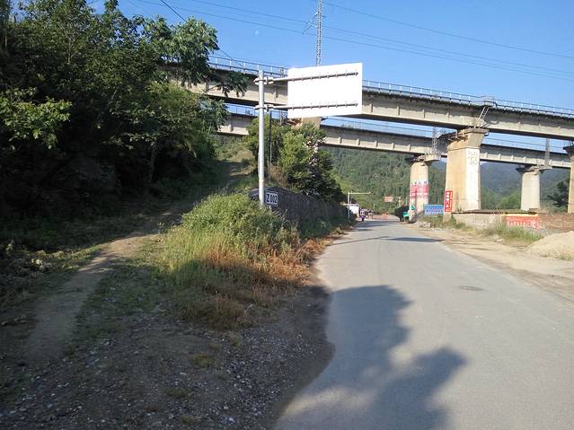 就在高架下面。公路有设卡,走左边的土路绕过去。