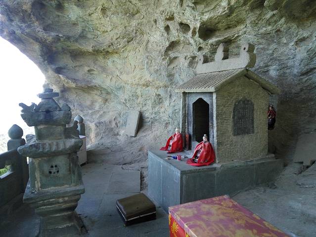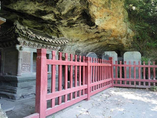 首先经过华阳岩,也是武当三十六岩之一,位于五龙宫的东面,背负高崖,面临深谷,是一天然岩洞。洞高3.6米,深5米,内有一座元代风格的石殿和三块石碑。