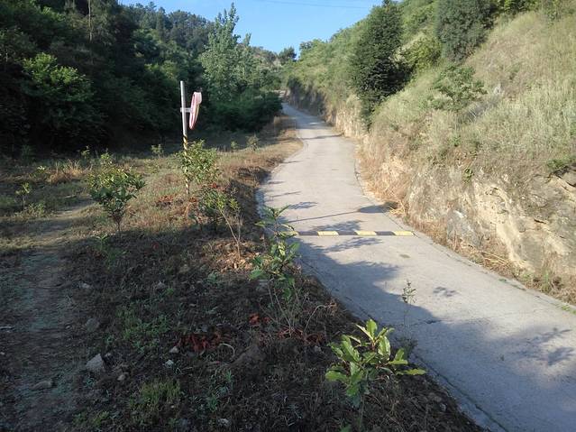 土路上去约百米就有一个石头堆砌的台子。沿着台子右边小路下去就回到公路了。