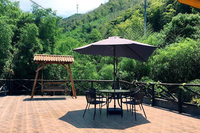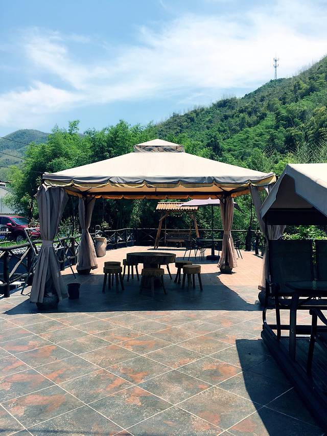 午饭过后热情的老板娘让人带我们免费进入天价裸心谷游览,风景不错,一望无际的绿色,闲暇逛逛很舒服,依山而建的树顶别墅和依水而造的夯土小屋很有特色。不过住宿的话还是免了,价格虚高。