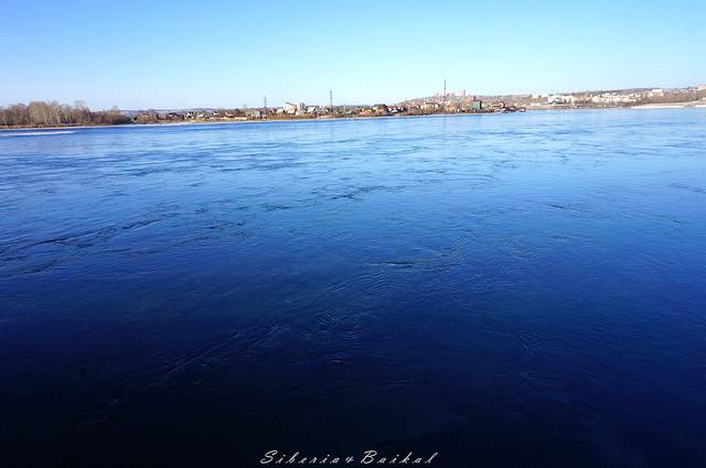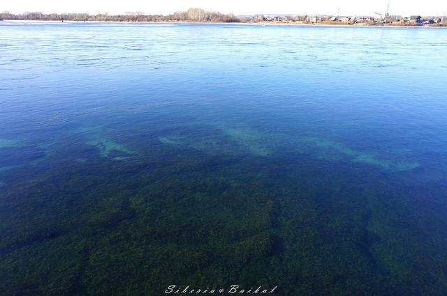 安加拉的河面很平静,没有一点波浪,河水清澈见底,据说它的温度常年在零上4°左右,不结冰