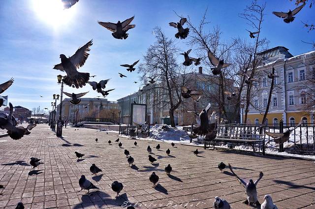 戏剧院前面是一个大广场,广场上到处都是成群结队的鸽子,这些鸽子一点也不怕人,人们经过时,会给它们喂食,每一只都养的肥肥大大的。