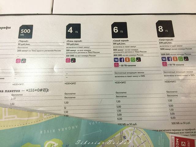 我们是购买的下图第二个套餐,在伊尔库茨克8天,基本上是够用的。购买电话卡时需要出示护照登记,营业厅买二送二,因此相当于我们400卢布购买了4张卡,无奈我们只有两个人,另外两张卡完好无缺的带回国。