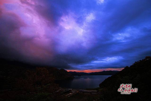 路过小洛水村的时候,彩霞与黑夜交织在了一起,相当迷幻