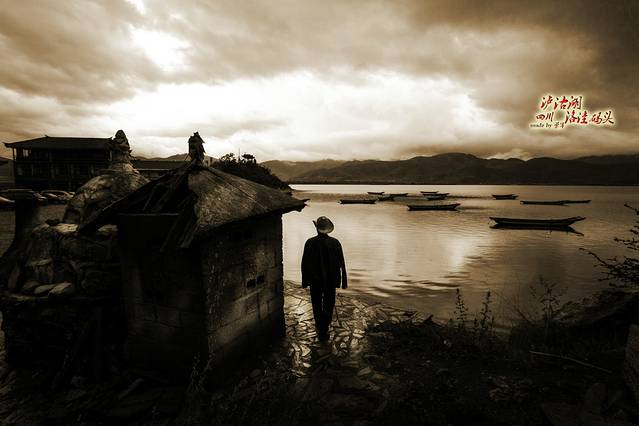 在洛洼码头吃过晚饭,看见旁边破旧的喂桑塔和小小佛塔2个藏民围着正在诵经,看这破旧的塔和日暮的天空,思绪飘风,在这商业大举入侵的时代他们还能在泸沽湖坚持多久呢?反正里格和大洛水已经完全落入了商业之手,成了丽江的翻版。真心希望他们这种心境还能继续坚持下来吧!
