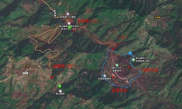 从西门进去,尚有几个山头要路过,可能有公交车,建议咨询酒店或景区以获得相关信息。