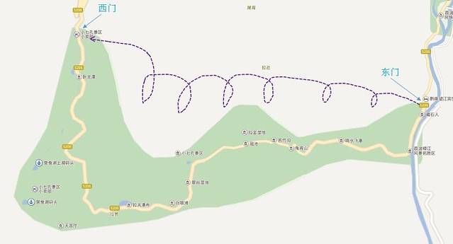首先进入东门后,景区要你买40元的大巴票,然后你坐上车之后,车子开出景区,大约是沿着紫色线路的不知道什么路拐来拐去的到了西门附近的第一个景点:卧龙潭。