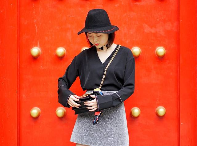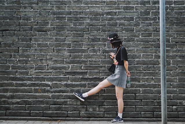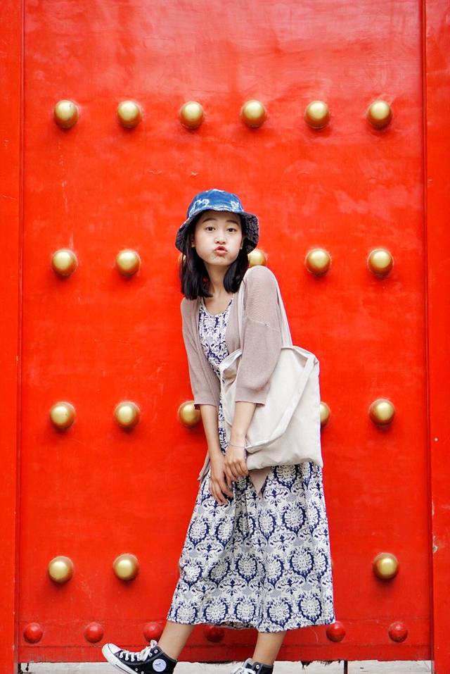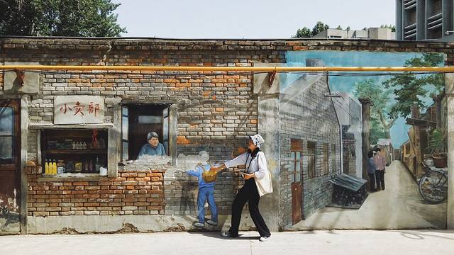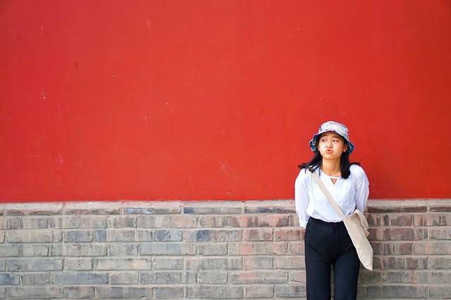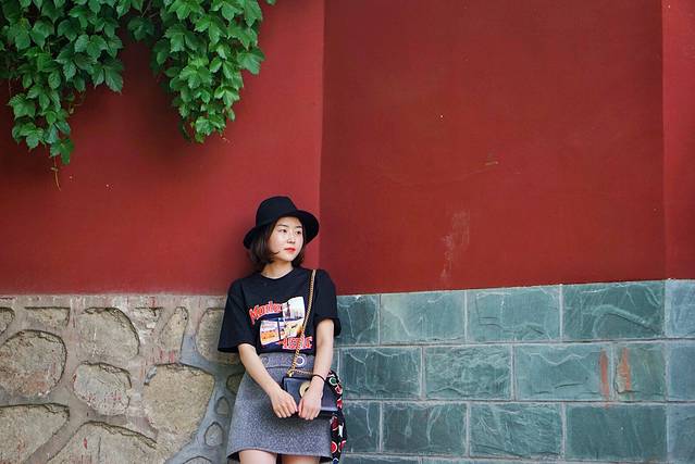 从北广场走到南广场路上的红墙