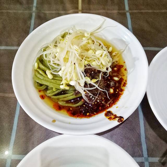 【城固热面皮】菠菜面10元。