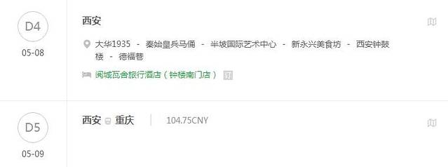 去程:火车K1004是5月5日晚21:23从重庆菜园坝火车站出发,5月6日08:41到西安站,硬卧188.5元。