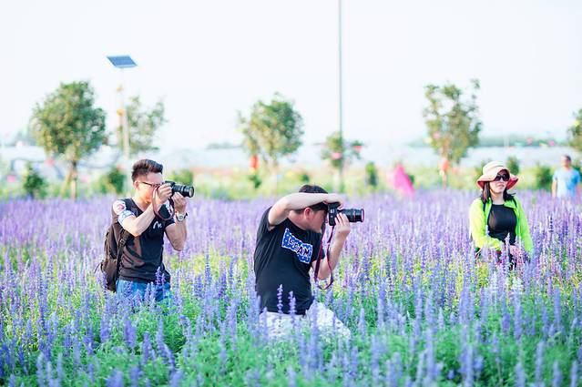 虽然天气炎热,但是也无法阻止大家的拍照热情,纷纷拿起相机记录此刻的精彩瞬间。斗胆分享下拍摄小技巧:人尽量站在花丛中,拍摄画面保证前景、人、背景,采用大光圈将人物凸显出来。