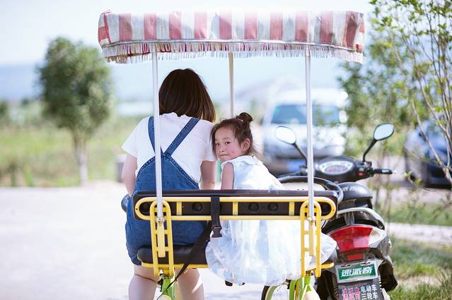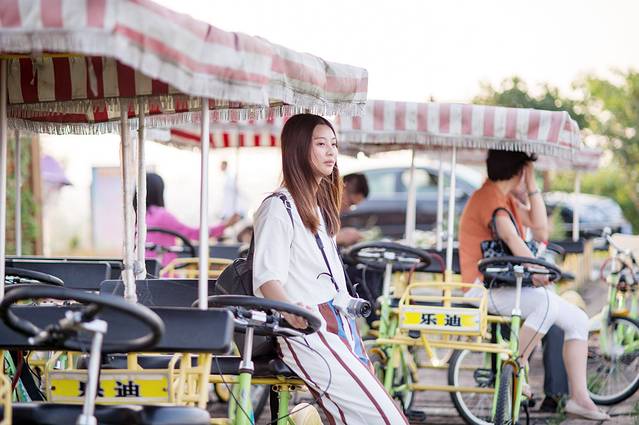 由于园区面积比较大,还提供了带蓬自行车,方便游客快速游览整个园区,天气热的时候这个是最需要的了。