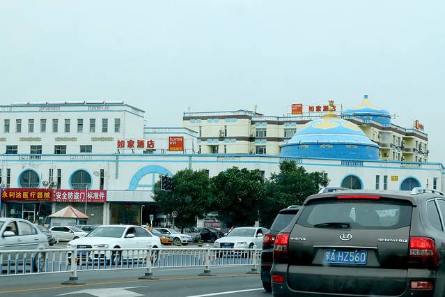 旅途中总会有意想不到的惊喜和小意外,由于在国道路不好走,我们在这里停滞了好长时间,眼看着天快黑了,不能再这么等下去,我们就掉头看哪里有路走一下试试,无奈绕不出去,大家都饿了,就在附近的一个小商店门前停下了,幸好碰到本地车也在这里停了一下,我们问了一下司机大哥,没想到遇到好心人了,由于导航导不出他指的路,还稍微有点远,他一路带着我们去了另一个高速入口,就这样我们顺利的重新驶入高速啦,这次一路畅通抵达东胜,到了已是晚上10点,我们决定先到酒店放下行李再出去觅食。