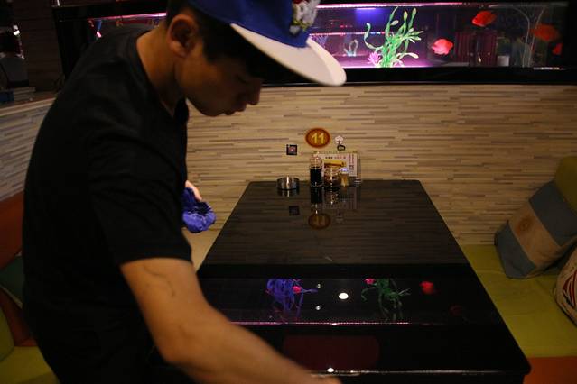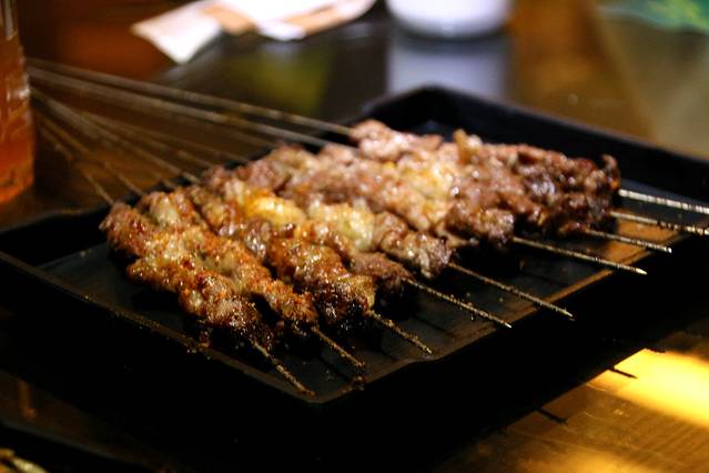 好多家爆满的烧烤店,都得排号等位。饥饿无比的我们,最终选择了街尾人略少的这家,冲着自酿啤酒和烤羊排