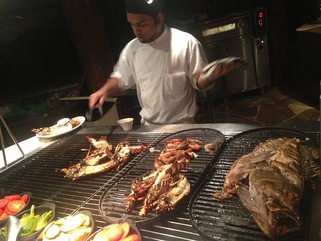 Kitchen主要是欧美风的西餐,FISH就是当日新鲜的海鲜大餐,海景无敌。Fire则是自助餐,各种创意料理海鲜烧烤等。