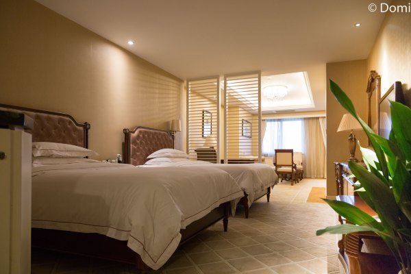 跟着服务人员的脚步与介绍来到了豪华的套房门口,精致的装饰,诺大的空间,一应俱全的家居用品确实让我感叹了一下,一家十几口来这里玩也足够耍的开了吧。