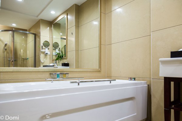 让我最喜欢的就是这个浴缸,足足可以躺下二百多斤的人吧?全方位的按摩系统真有一种跳进去的冲动。偷偷想像了一下如果我妈在我身边一定一脸鄙夷的看着我此时此刻的表情。早就说过,我看酒店的第一眼一定是先看洗手间的,没办法这个洗手间我真的很喜欢。
