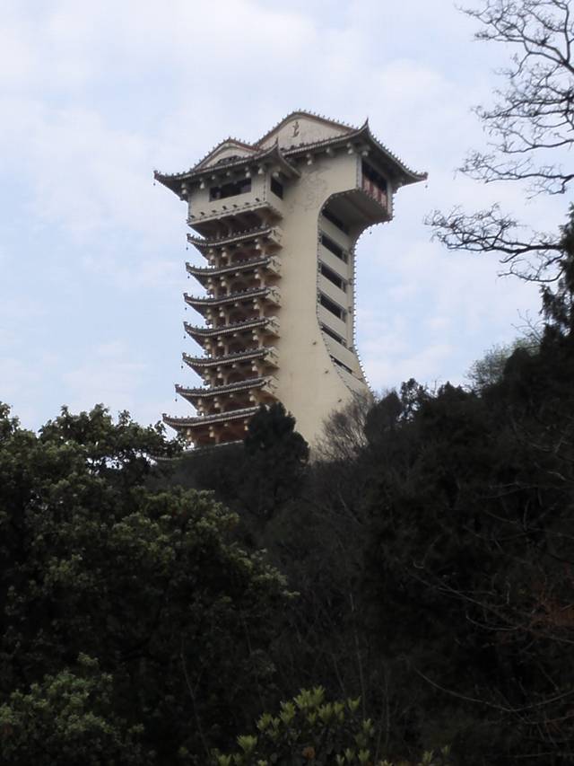 下午2点半回到广元很累了,找到格林豪泰发现它比七天贵几十元,可是七天的噪声会让我休息不好,而且格林豪泰的位置距南河车站很近,对明天去剑门关有利。决定不节省这几十元,事实证明格林豪泰的条件值得贵这几十元,除了面积小一些,其他方面不比一些星级宾馆差。放下行李出去吃饭,到南河车站问清楚到剑门关的车次,然后回来洗澡,休息一会,太阳不足了,再去走走。广元的老城区旅馆多得很,城市卫生不好,凤凰山公园也不干净。之前看到的那个丑陋的楼就在山上。走近了发现太难看了。