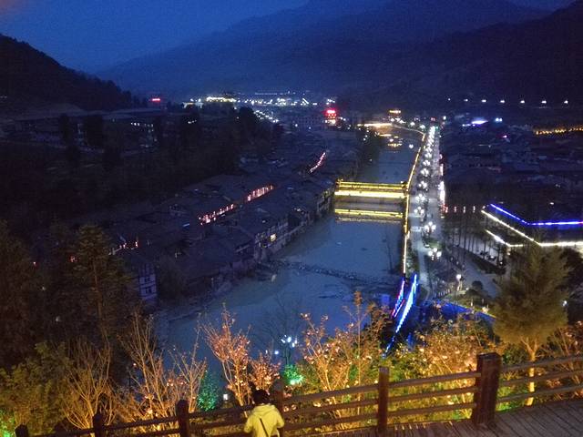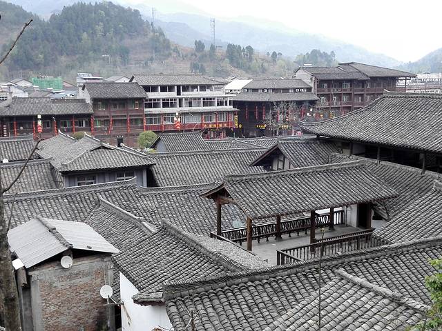 这次我没有随便找个旅馆住下。一下车遇到一对正准备离开的夫妇,便问了他们住的旅馆怎么样,他们向我推荐刚离开的住所,山城客栈。果然很好,干净,舒适,有淋浴和wifi,才100元/天。对面有个小吃店,买了一笼包子和一碗醪糟(管它血糖高不高!),水足饭饱直奔魏氏庄园……。天黑之前我已经把镇子游览完了,吃过晚饭,拿上登山杖登到山上观古镇夜景。