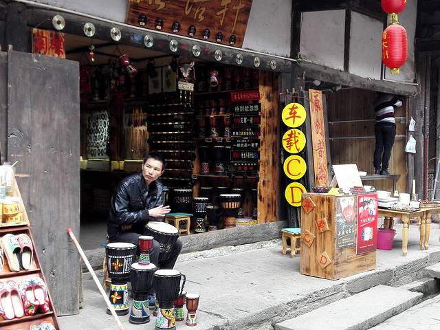 古镇有几个酿酒的作坊我特别喜欢,真想买点酒喝。黄昏时,独自一人在河边,这里的气氛让我想到如果有两三好友同来,晚上把盏闲聊该有多么惬意啊。我独自旅行好几次了,从没有像今天这样觉得孤独,这样思念朋友,这样渴望有同伴。
