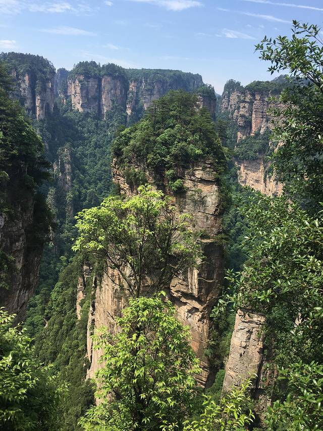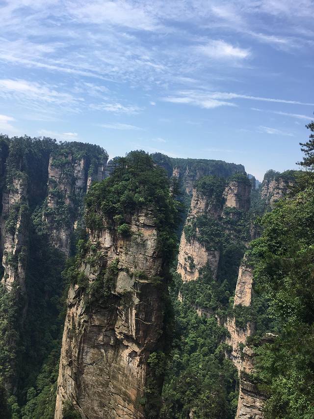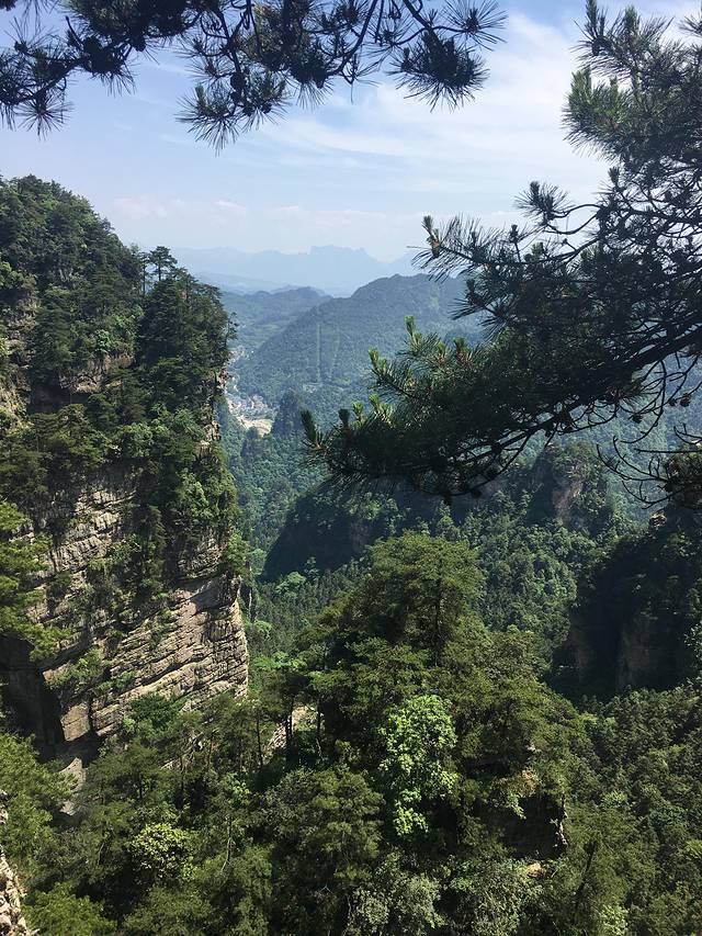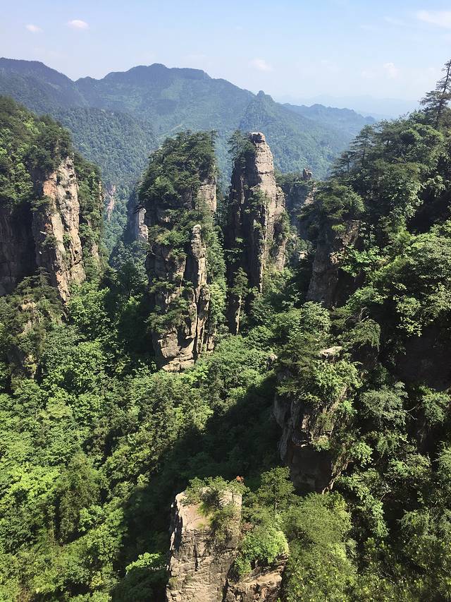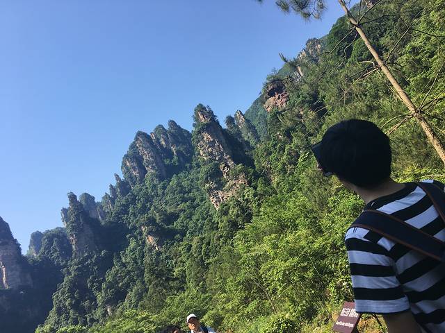 这里是从天子山下山,但是是十里画廊。和第一天走的路线完全是两个风格,全程上上下下台阶,很陡有的地方都接近九十度了,山林里没有一点风。简直是人生大考验,自己选择的山内心崩溃也要走完