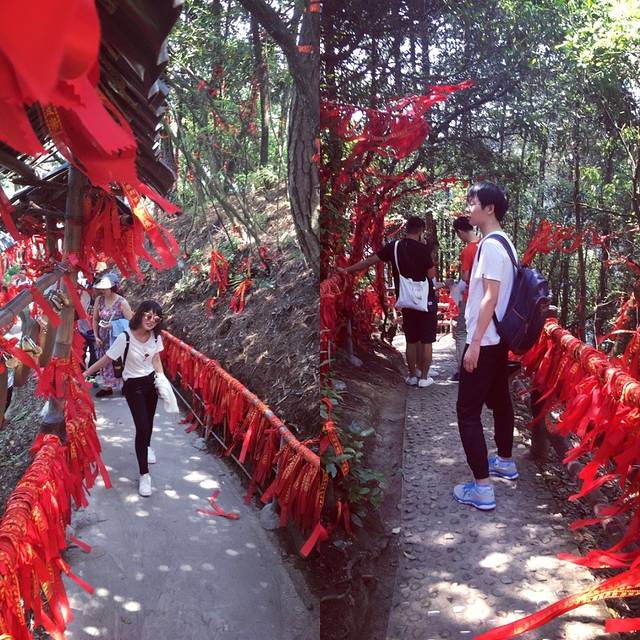 跟着人群一路,在拐弯的位置可以看到连心桥,有很多祈祷的红布条