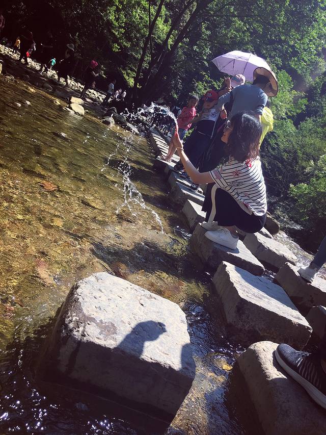 金鞭溪,潺潺流水一路向下,冰凉冰凉的,有的地方还有小鱼