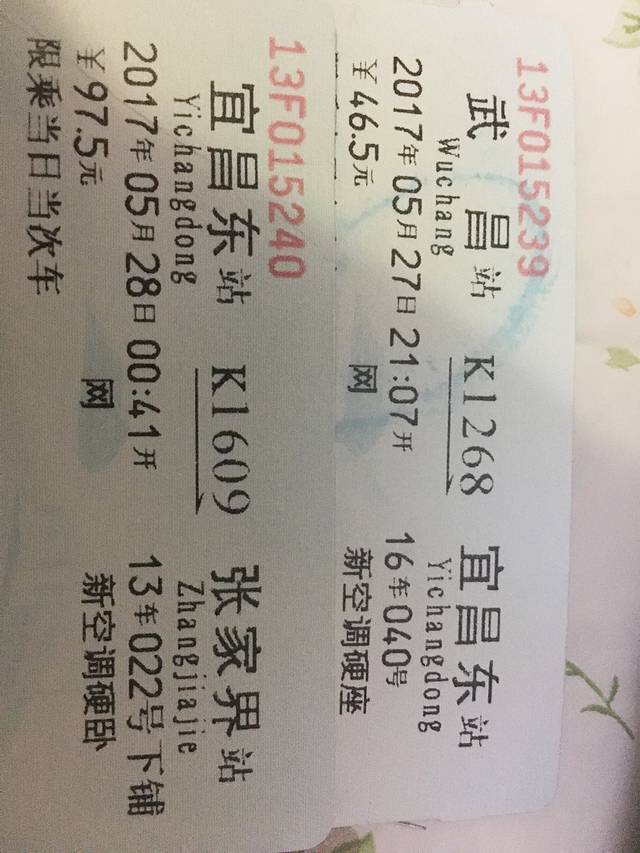 放假当天晚上从武昌火车站 K1268晚上 21:07火车经过3个多小时零点到达宜昌东站,然后转00:41的火车 卧铺k1609经过5个多小时早上5点四十多到达张家界站
