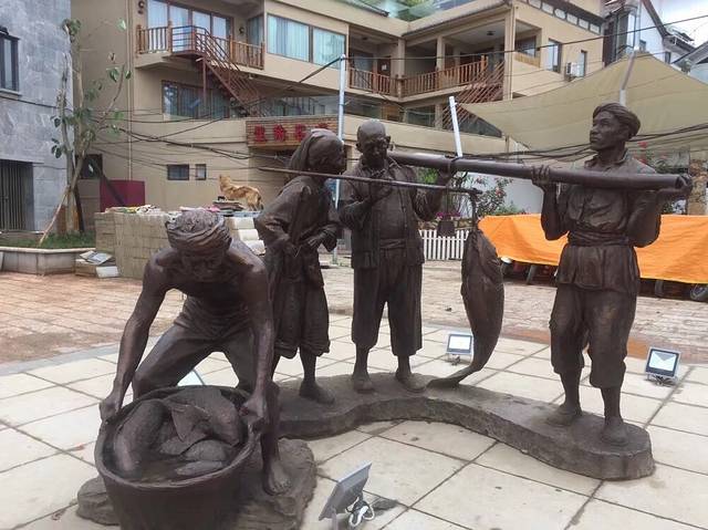 渔民打鱼卖鱼的雕塑惟妙惟俏