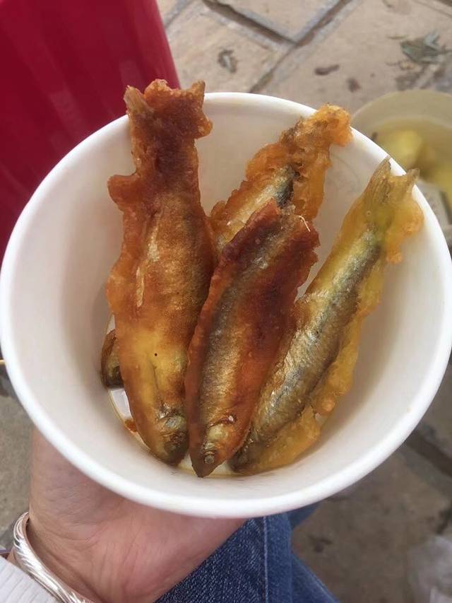 海边的小吃,炸鱼串,看上去还不错,肠胃不是太好没敢吃完