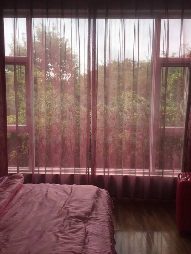 窗户很大,整个一面窗户外面都是茂盛的树木,早晨睁开眼睛就能感受勃勃生机