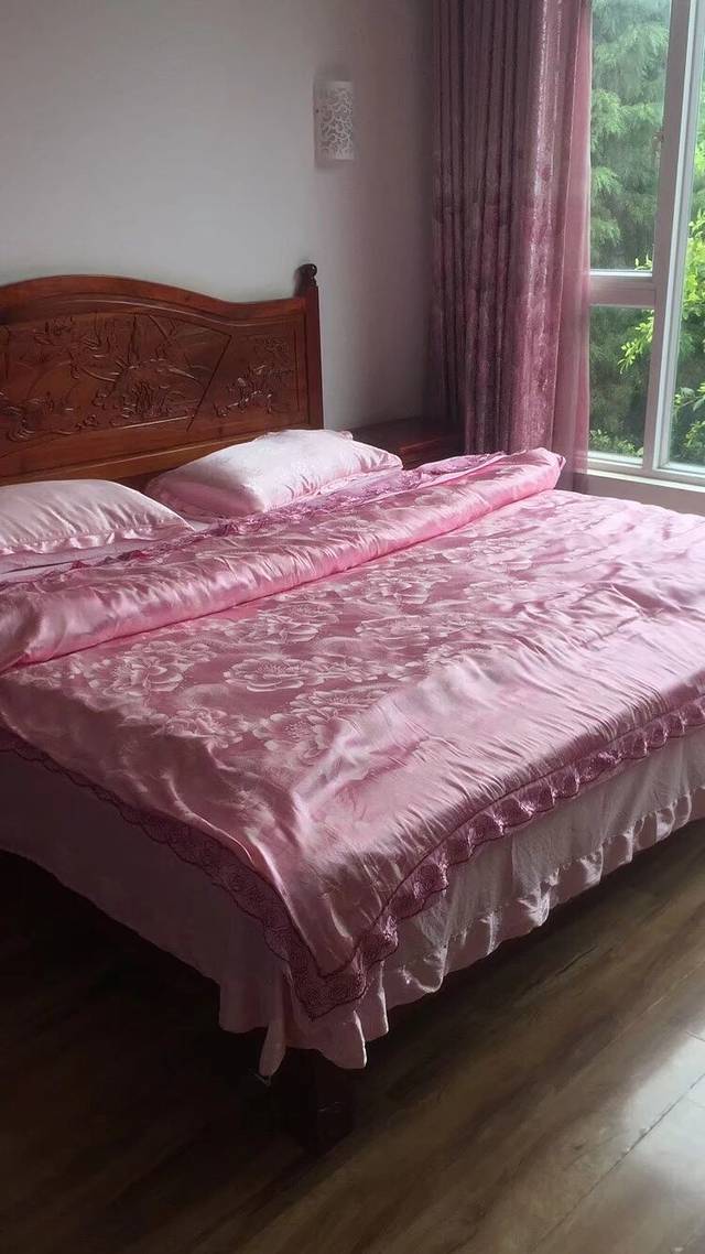 粉色的绸缎被子,少了一份商业化的气息,多了几分待字闺中的错觉😁