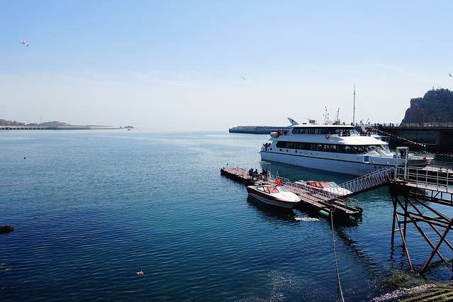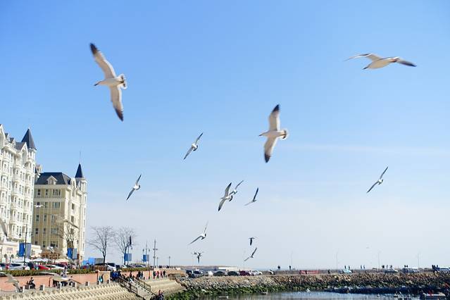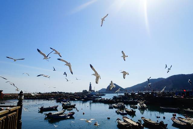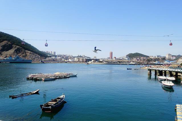 沿着海岸线走,有停在码头的渔船和翱翔的海鸥。大连的海的颜色真的是去过的海边中最美的。自带滤镜的碧蓝海洋与湛蓝天空相呼应,真的是像画一样的美丽,文采不好请看图