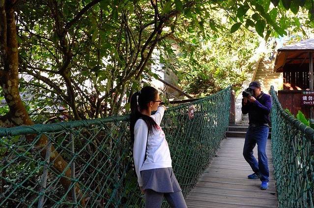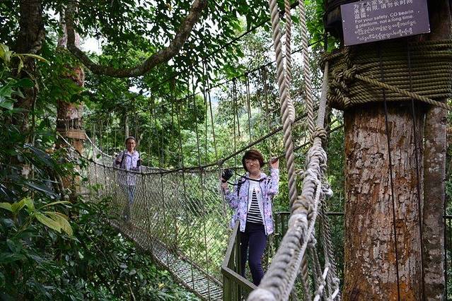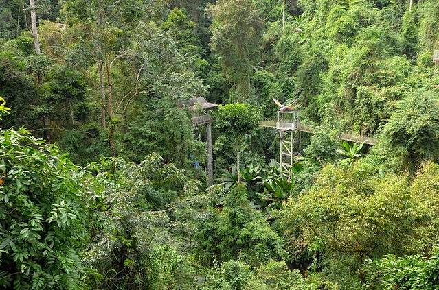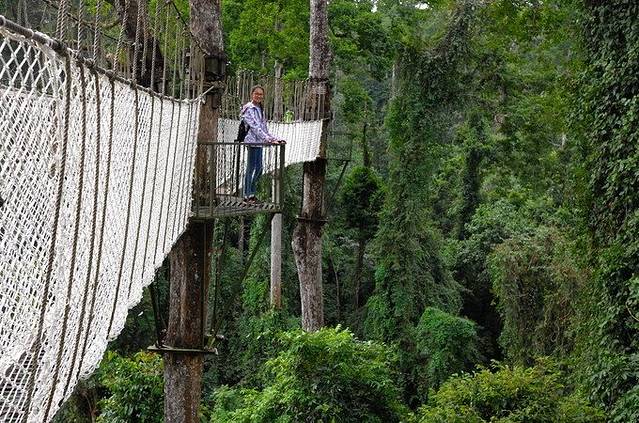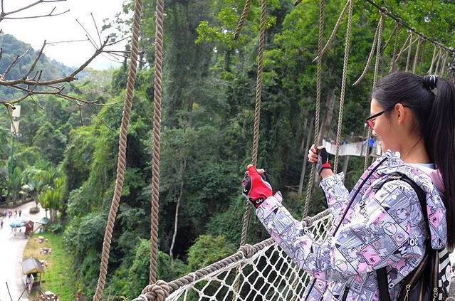 上方就是望天树景区全长500米,高36米的 高树 冠空中走廊
