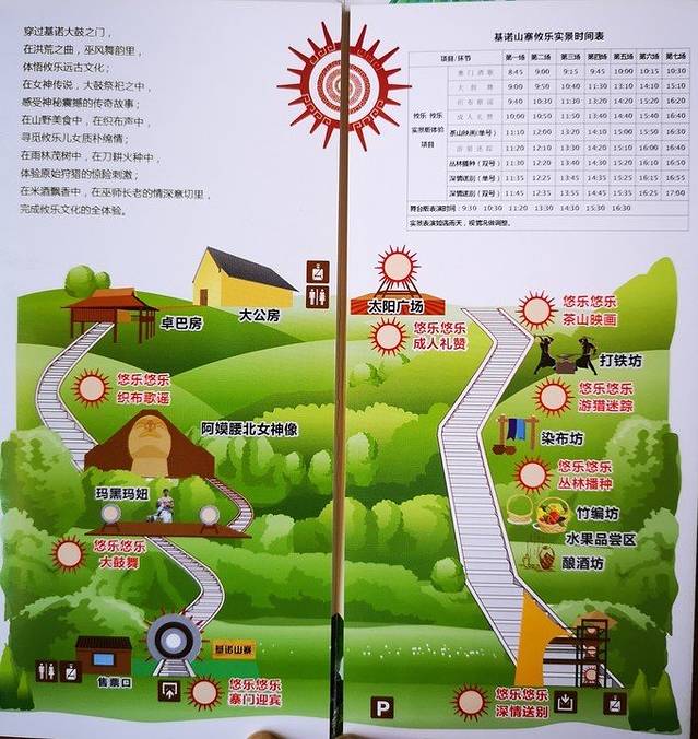 以下为各个景区的游览图以及景区内节目表演时间表。