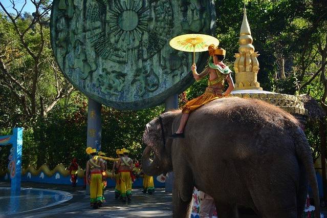 在泼水广场的民族风情演绎,每场30分钟,可以根据演出时间,前去观看,还可以参与大象泼水狂欢