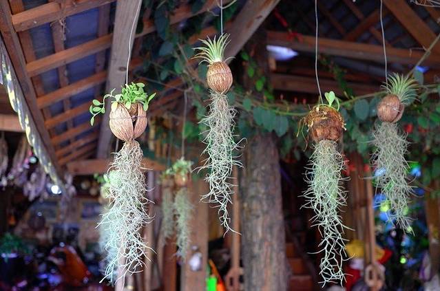 空中花园:热带雨林中的附生植物形色各异,琳琅满目地挂满在树干和藤萝上,被誉为“空中花园”。这些附生植物为了争取生存空间,通常躲过厚厚的树层,攀附高枝,充分而有效地捕捉阳光,待到开花季节便五品缤纷地构成空中花园的绚朋丽景观。