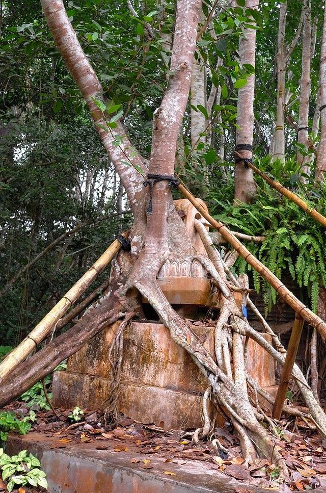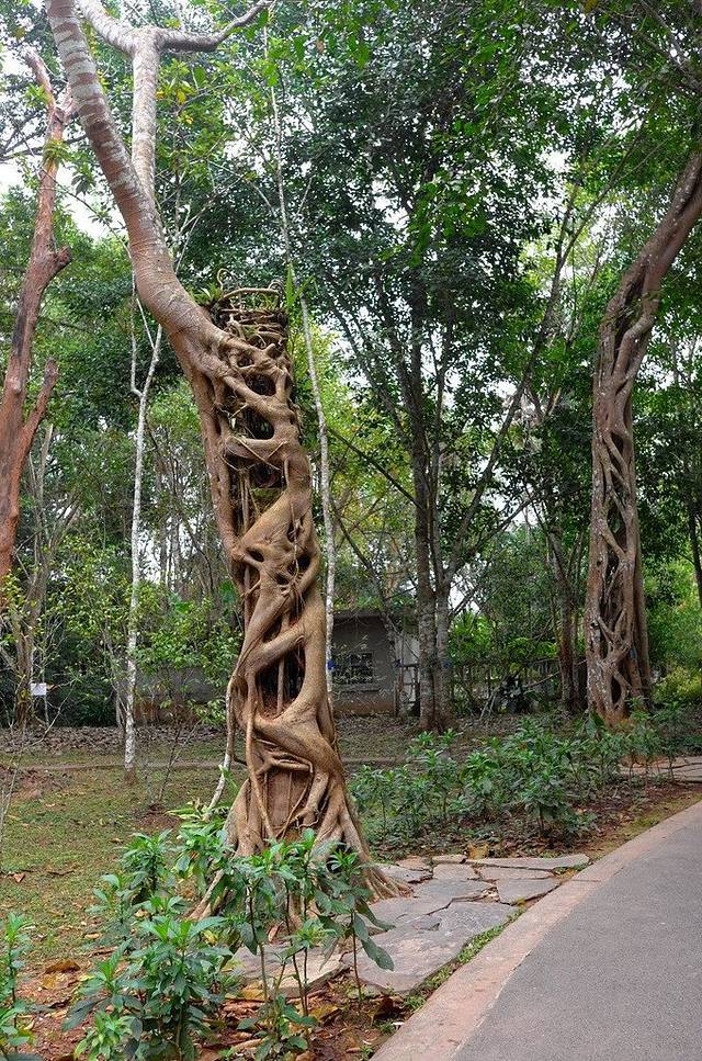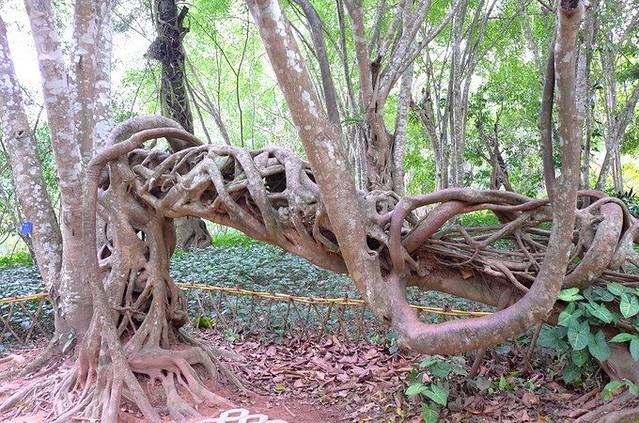 树包塔:这是中科院热带植物园的一处景观,树的枝丫包裹着塔,紧紧缠绕