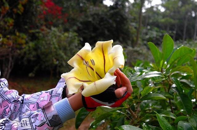 金杯花:硕大的杯状花冠独生于枝头,美丽奇特---“金杯花” 它寓意着 成功 、胜利,金杯花会释放出巧克力香味。
