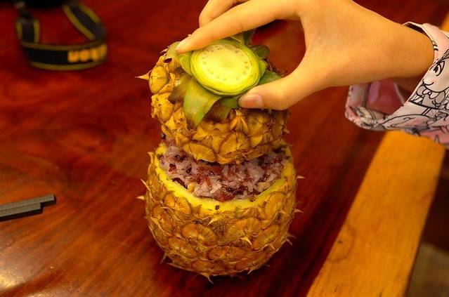 来到 西双版纳 ,大家都会去品尝香茅草烤鱼。鱼,选用的是新鲜的罗非鱼,处理干净后将生姜、蒜、葱以及食盐等佐料填进鱼肚子里,然后用香茅草把鱼肚捆好,再用竹片夹紧放在炭火上烤。这样烤出来的罗非鱼不仅鲜甜细腻,而且还有浓郁的香料香气,十分美味。