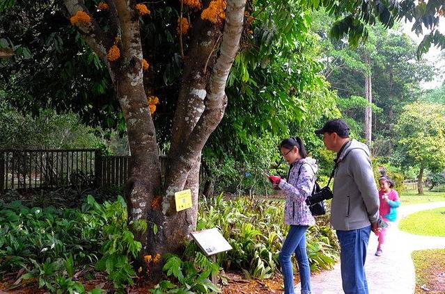 植物园里有很多寻宝专用牌,趣味和知识性都挺强。一路找找看看,扫码答题,挺好玩